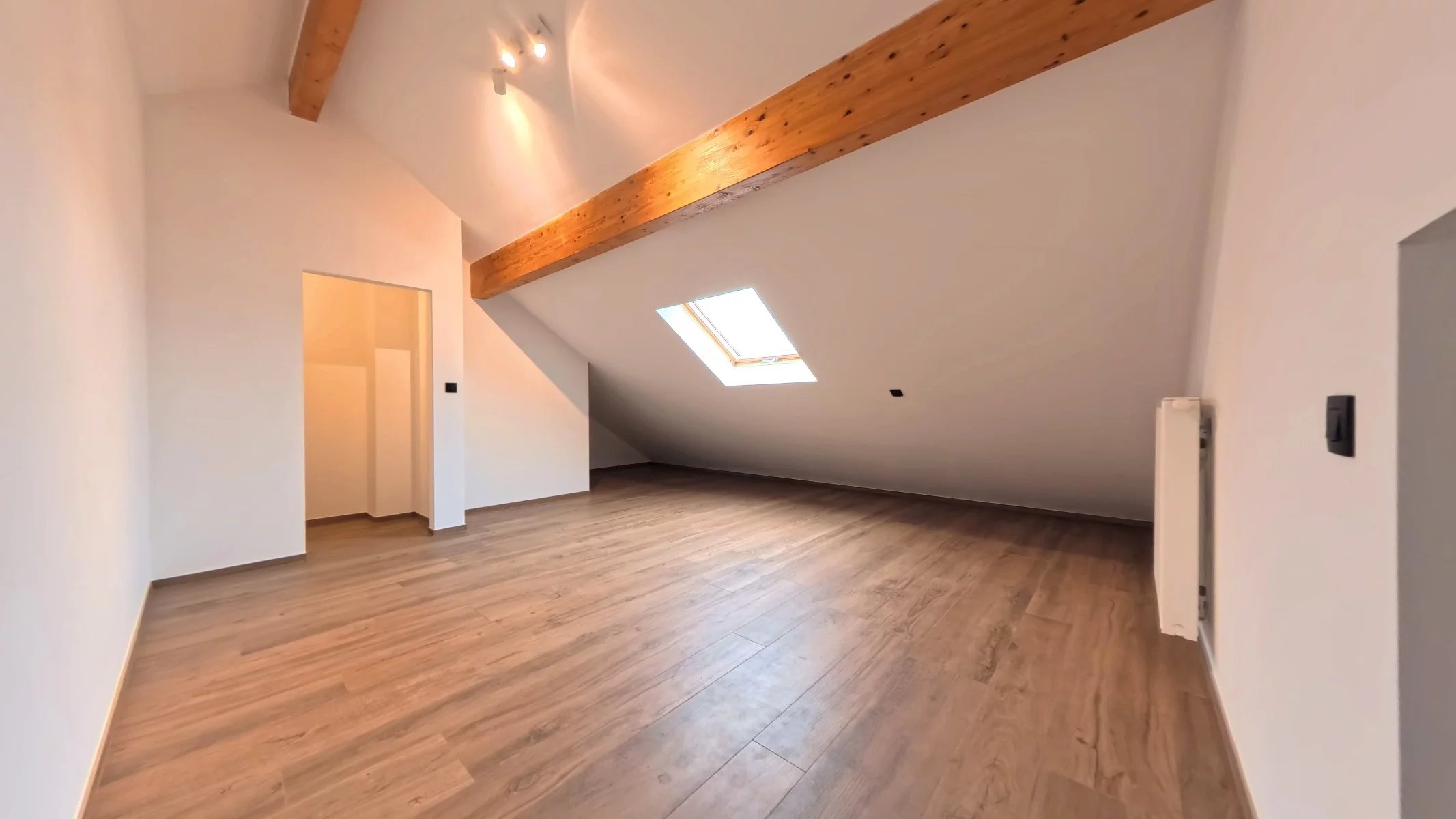 Ein Dachboden mit niedriger Decke und Mansarde von +- 8 m2 vervollständigt das Zimmer auf der linken Seite.