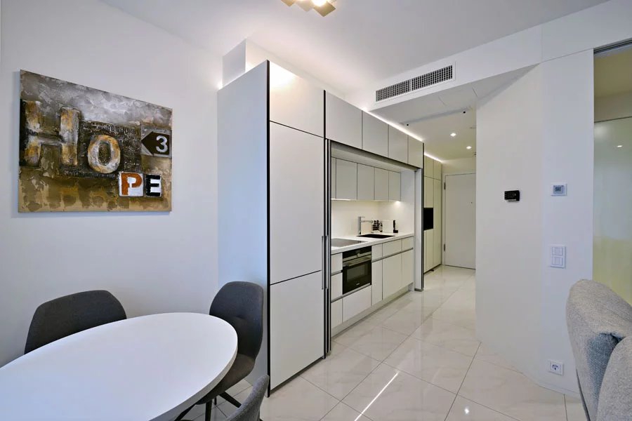 Il Groupe Immobilier MTP propone in affitto un piccolo appartamento di lusso di 40 m2 al 3° piano di una residenza di alta gamma nel centro della città.