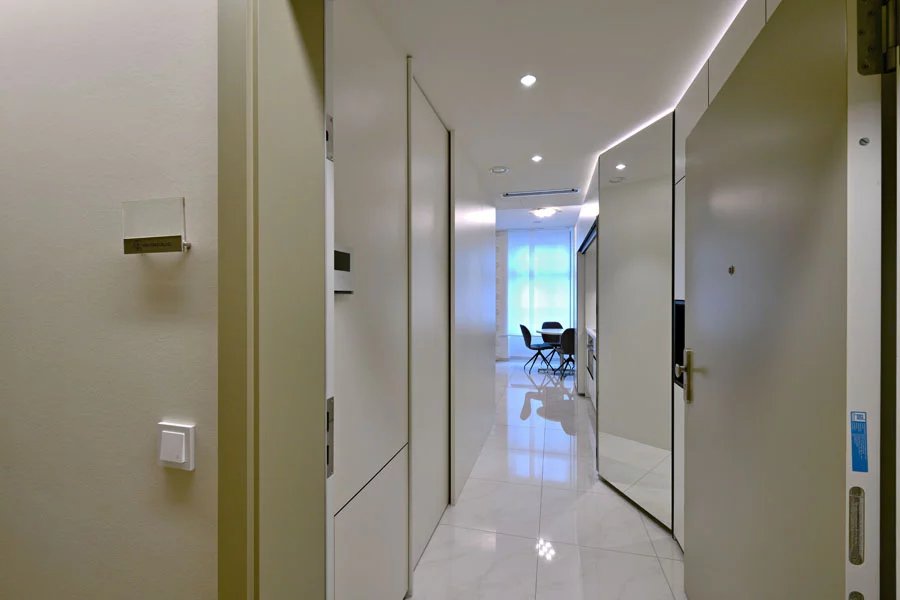 Varie: porta d'ingresso blindata, finestre con triplo vetro, tapparelle elettriche, ascensore, illuminazione indiretta in tutto l'appartamento, tapparelle.